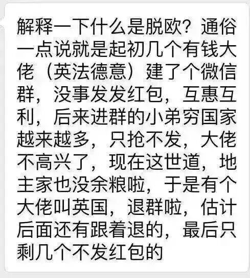 这脱欧到底是怎么一回事儿呢?机智的天朝子民们似乎早已看穿了一切。。。