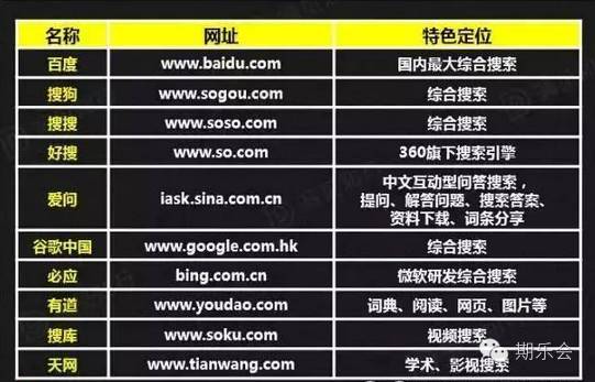 搜索引擎是我们信息资料搜集的最重要的渠道之一,用搜索引擎查找信息资料需要使用恰当的关键词和一些搜索技巧。目前国内主要的搜集引擎有如下10个,近期还有较多行业型搜索冒出来,需找专业型行业资料可以使用行业型搜索引擎。