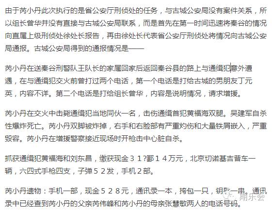 芮伟峰是8月2日晚在上海的家里接到古城公安局的电话通知和传真笔录,传真笔录里有数名刑警的目击证言,有通缉犯黄福海、刘东昌的目击证言,这些目击证言在证明芮小丹与通缉犯交火的真实情况的同时,也证明了芮小丹自杀的事实。