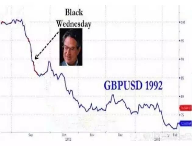 犹记当年,1992年索罗斯发起了一场做空英镑的狙击战,打爆英国央行,顺走英国人民整整10亿美金,直接把英国打趴下了。