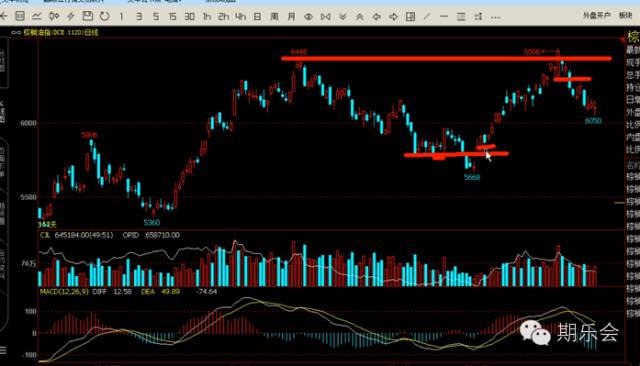 我们也可以用MACD指标来配合2B法则。6506这个高点的MADC没有高于6448MACD的高点,这样出现了MACD背离。而底部的MADC(5668)高于前面的低点的MADC形成了底部背离。只要跟指标相结合,会得到更加精确的买入点和卖出点。