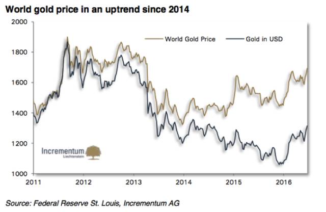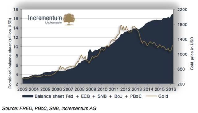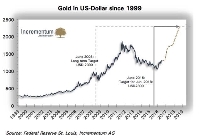 我们的主要论点最初是,通过印刷机式的货币手段是不可能创立一种“自我维持”式的经济增长。当时,各国央行行长成功的抑制了经济继续变坏,同时市场也恢复了对货币体系的信心,黄金也似乎被一度认为是“死亡资产”。然而一开始产生金融危机的根本性结构问题实质上只是变得更糟,也就是不断扩张的信贷问题。因此,我们认为金价总体走势是乐观的。去年,我们有足够信心认为到2018年6月黄金将达到2300美元。接下来,我们将在此篇报告中给与解释。