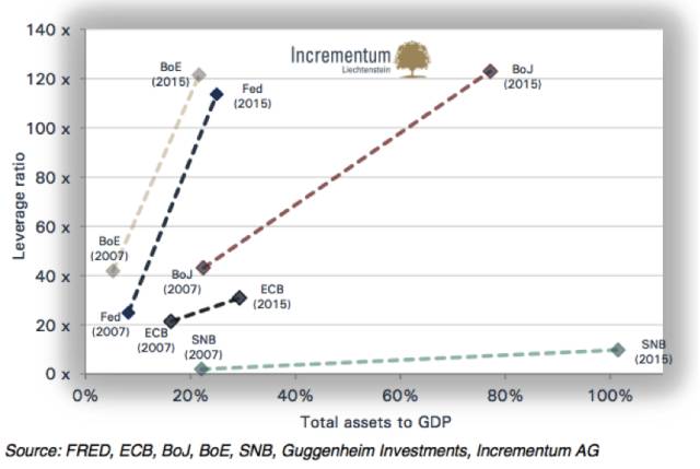 各央行资产负债表扩张:2007年 VS 2015年