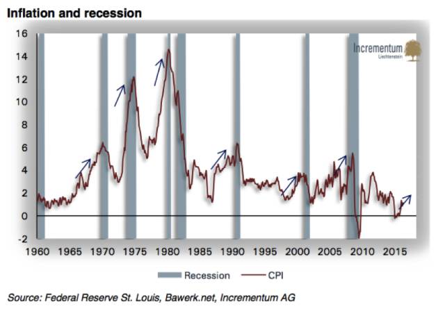目前全球经济相关性已经达到前所未有的程度。这种相互依存关系意味着两种可能性:大事件的接连发生可能引发美国经济衰退——并包括世界其他经济地区的衰退;另一个触发因素可能是价格通货膨胀。大宗商品经历了几年的大幅下跌,最近开始有所起色,这也体现在最近价格通胀数据上。