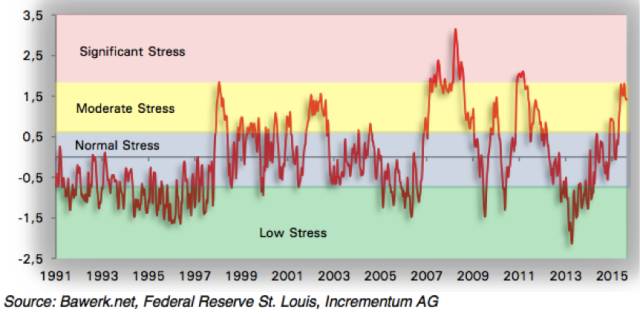 CFSI指数显示,目前金融压力水平为“适度”(3级),但也十分靠近“严重”区。