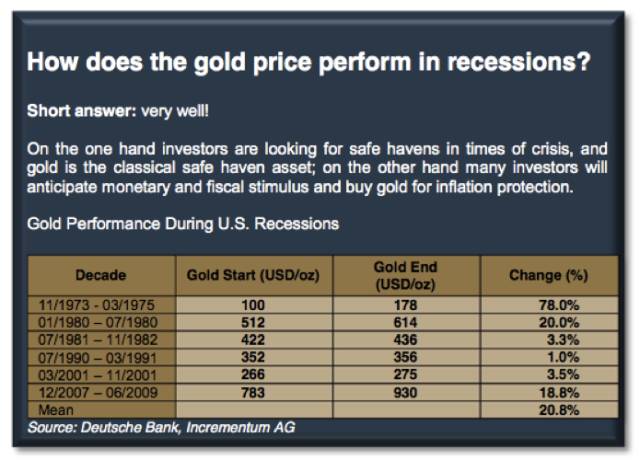 往年经济衰退期间,黄金表现