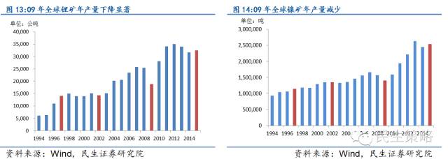(2)金属开采:厄尔尼诺影响下,铜矿主要产出国智利、秘鲁洪涝频发,铜矿减产,镍矿第一出产国印度尼西亚旱情严重,镍矿产量显著降低。厄尔尼诺对我国镍矿产量影响显著,2008年,镍矿产量同比下降19.53%。