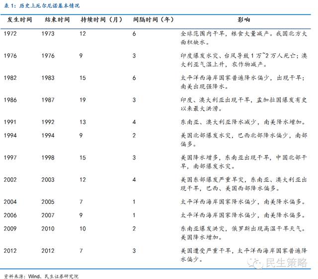 风险提示:本文相关观点建立在厄尔尼诺的后续影响及发生拉尼娜基础上,天气变化及拉尼娜发生与否存在不确定性,对于相关行业的影响也可能与分析存在差异。