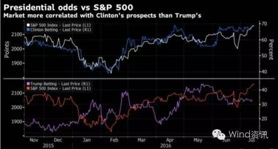 “这个图基本上已经认定希拉里是总统,并且认为经济已经强大到支持她当选。” Strategas政策研究主管Daniel Clifton表示。但他也指出,未来三个月的股市波动,对大选的预言作用将比现在更好。