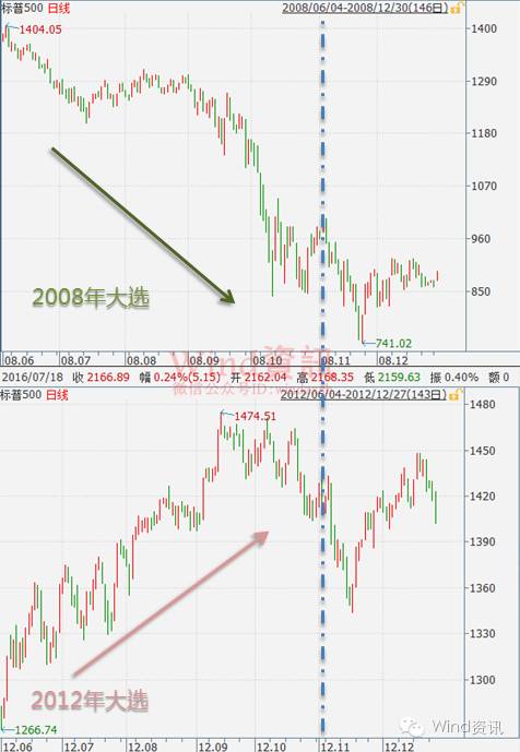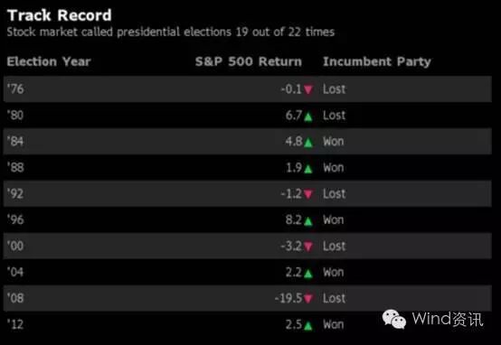 在过去八年中,这个信号都是准确的。2008年大选前数月,股市大幅回撤,民主党奥巴马取代共和党小布什成为新一届美国总统,2012年同时期,股市连续上涨,奥巴马连任。