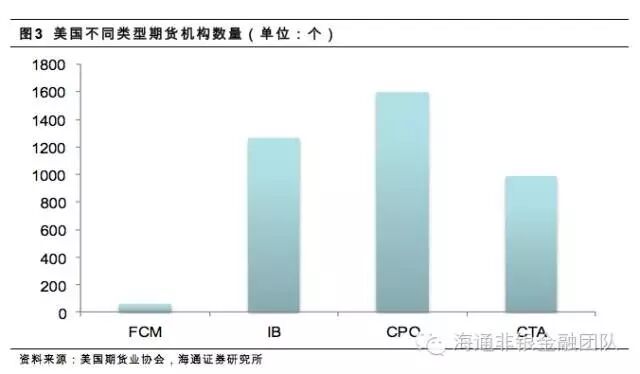 (3)美国期货机构主要存在四类业务模式:期货佣金商(FCM)、介绍经纪商(IB)、商品投资基金(CPO)、商品交易顾问(CTA)。