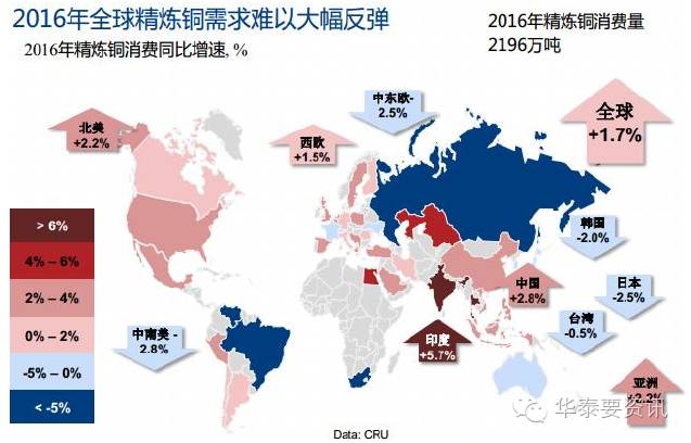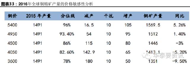 根据ICSG的统计,2016年新投放的精矿产能约150.5万吨,结合目前宣布减产的产能仍然会增加约85万吨的产能,但根据CRU的模型结果显示,当铜价低于4500美元/吨之后,全球铜矿2016的产量将会减少3%,而最新铜价已经跌至4500美元一线。