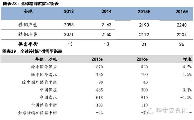 锌方面,由于海外减产及关闭矿山,预计2016年境外锌精矿产量将下降60万吨,加工费面临下行压力。
