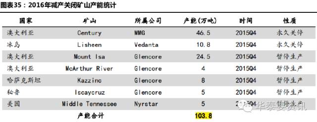 2016年海外减产及停产的产能约100万吨,扩产及新投产的新增产能40万吨,海外精矿供应量下降60万吨。