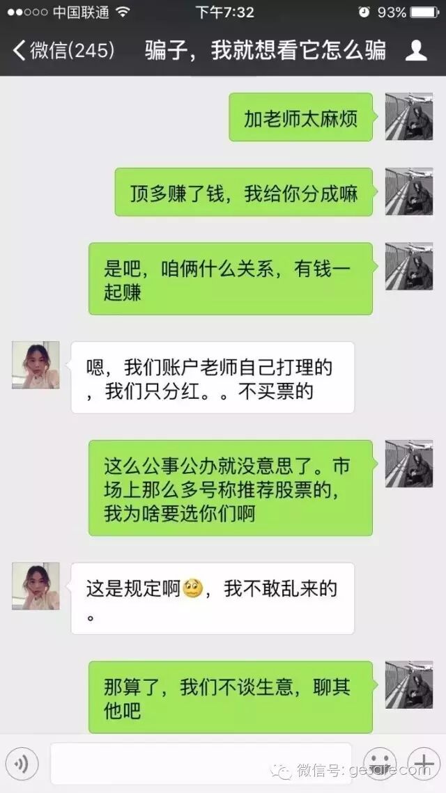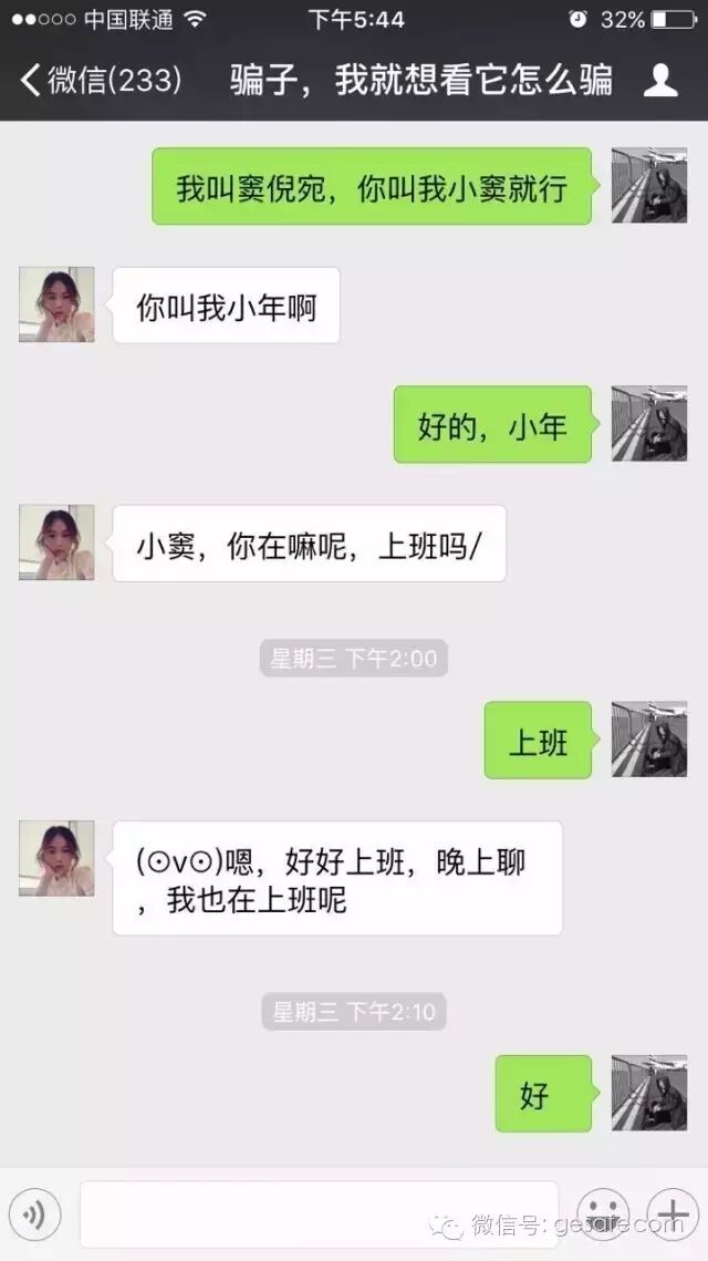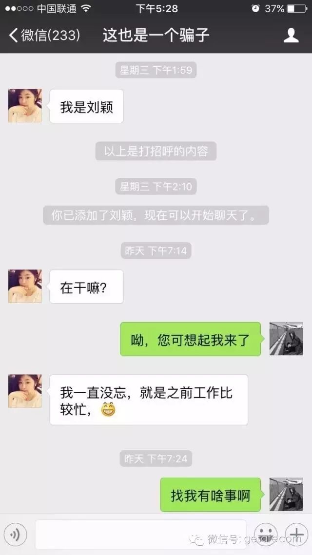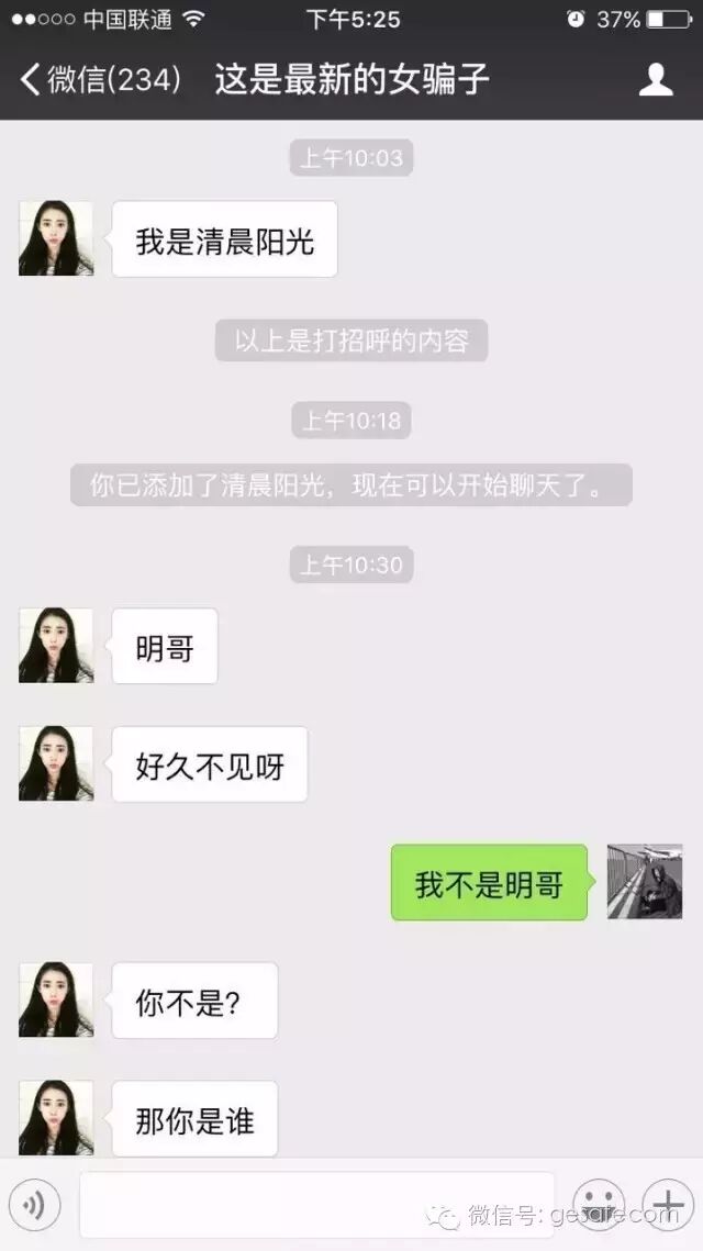 这是自来熟型,其实我压根不认识她。后面我会以她为案例,讲讲骗局是怎么展开的。