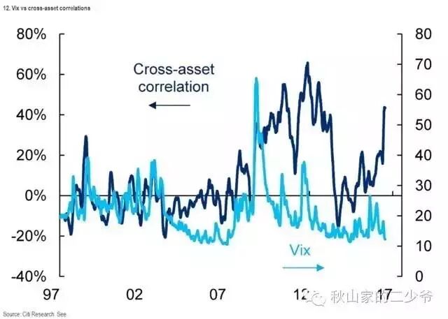 在英国退欧公投后,投资者开启的疯狂追逐收益率模式进一步拉大了实体经济和资产价格间的背离。政治风险在全球快速上升,然而出于对更多刺激政策进一步压低收益率的预期,投资者绝望地追逐一切能产生现金流的资产 – 从房地产、高收益债、高分红股票、以及新兴市场。风险资产与债券同涨,市场的风险定价机制似乎已经失灵。尽管八月份从历史上看属于高风险、高波动的月份,但在如此不利的季节性因素下,市场预期波动率仍处在几十年的低位,各类资产的相关性快速上升。