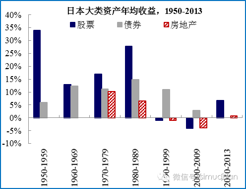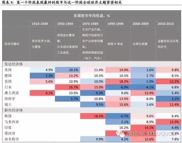 1950-1969:战后繁荣期、日本开始工业追赶。这一时期最好的股市资产是日本,其次是处于战后恢复期的德国;