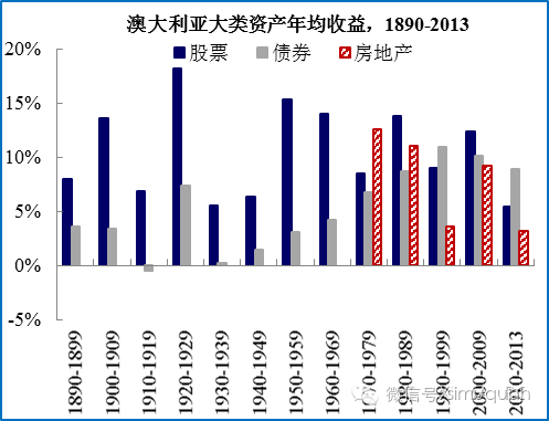 德国V.S.澳大利亚的启示:战争(尤其是战败)的代价。过去100年的资产表现来看,有一个很有意思的现象,德国股市是过去100年内最差的资产,年均收益-20.5%,远远低于其它类型资产,这意味着长期来看,规避最差的风险资产是大类配置的首要任务。相对而言,澳大利亚股市是表现最好的资产之一。从当前的经济实力、经济前景来看,德国似乎更甚一筹。然而,长周期资产表现却大相径庭。显然,战争是导致德国资产长周期收益为负的最主要原因,1910-1929年间,德国股市年均下跌20%,随后在1940-1949年间再度出现年均29%的下跌。尽管战争结束后德国股市稳定上涨,但仍无法填补战争时的下跌。然而,对比澳大利亚,依靠政局及经济的稳定,在每一轮新兴经济体启动时均作为资源供应者而受益。