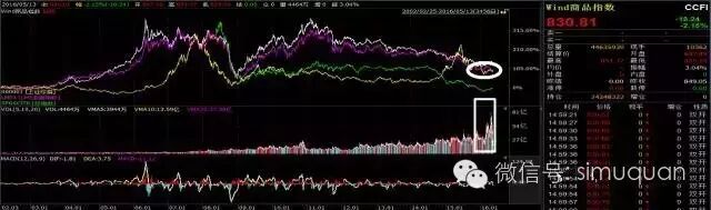 特别值得一提的是,615股市异常波动前的小牛行情,是在经济下行的过程中出现的,主要是因为货币泛滥,投机资金加杠杆所致,期间,商品仍在下降通道中没有发生异动,而615行情很快因后续资金供应不上而转折。