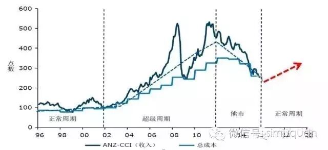 下一轮行情,不排除大宗商品牛市行情可能先于股市产生。在过去牛市行情中,商品行情持续时间更长。主要是商品期货有实物支撑,它的上涨通常以资源稀缺与通胀的形式表现出来,而股市是资产价格的表现,受上市公司盈利增长的影响很大,波动也更大。