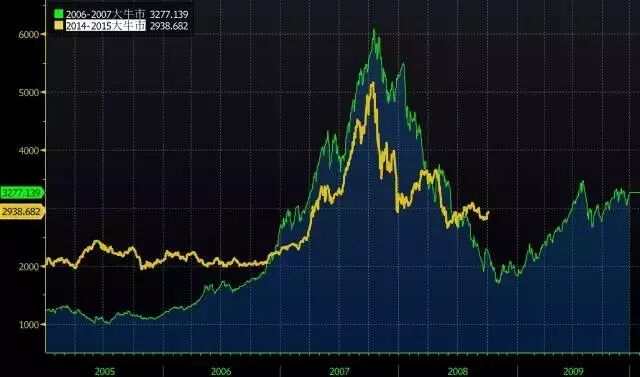 有人把07年牛市和当时走势做对比,甚至有把郁金香泡沫的图拿来重叠对比的。这种做法看似有理,但没有任何依据。两幅图叠加,有两个X轴和Y轴,平移、缩放、拉升的处理空间是很大的。任何一波牛熊都是可以通过这种方式大致重叠的,这不过是种错觉。