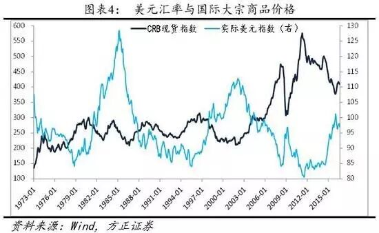 当面临过热或通胀风险时,美国货币政策转向紧缩,联邦基金利率和国债收益率趋于上升,美元指数走强,国际大宗商品价格下跌。从大类资产和区域资产配置的角度,在强势美元时代,美元资产收益预期上升,国际资本回流美国本土市场,造成全球资金面紧张和利率上升。这一时期,如果世界某些地区出现了较大的资产泡沫或债务风险,对流动性和利率比较敏感,则容易出现问题,比如1982年的拉美债务危机、1997年的东南亚金融危机等。