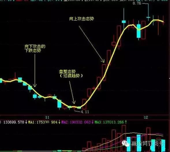 一种是3天均线向上的时候,被称为短期向上攻击态势(角度越大,攻击力度越强,45度角是强弱界线)