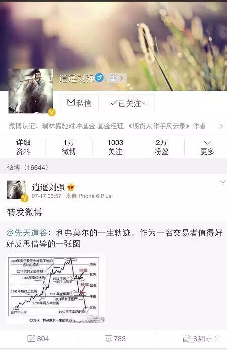 7月17日刘强在其最后一条微博写到,利弗莫尔的一生轨迹,作为一名交易者值得好好反思借鉴的一张图。