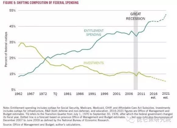 政府的福利支出增长率不断上扬,投资支出增长率不断下降,支出结构越来越不健康。