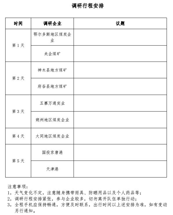 先后赴鄂尔多斯、神木、府谷、五寨、朔州、大同、京唐港、天津港等地进行走访和座谈交流。