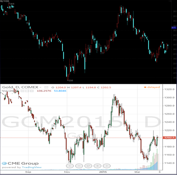 我们可以看一下,现在内外盘套利的效率非常好,上面是上海的沪金报价(图1),下面是CME的黄金,它的价格走势相关性非常好,因为开收盘时间不一样,会造成一些略微的的差异。据我观察,比较明显的价差应该不会超过1秒,都跟得非常好。