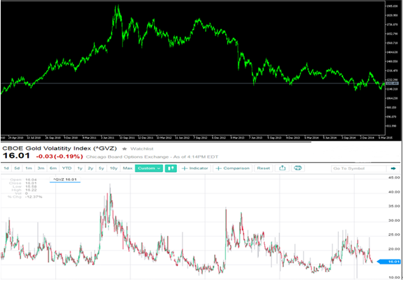 股市刚出来的时候大家知道,如果你买股票价格下跌可能会亏损,后来融资融券出来了,意味着股票上涨你也可能亏损。上周50ETF期权出来了,股票价格不动也可能亏钱,反正散户亏钱是逃不掉的,上涨你要亏,下跌你要亏,不动也可能会亏,因为期权有个时间价值。除了做多跟做空之外,其实还有两种交易方法,大家可能不太熟悉,因为作为期货的交易者比较熟悉的就是做多和做空。如果你同时买入看涨期权、看跌期权,价格不动你就亏钱了,价格不动也会亏指的就是这个意思,你两笔期权都扔掉,如果价格大涨的话,看涨期权就可以行权,如果价格跌了,看跌期权就可以行权。它意味着我们可能不了解价格到底是上涨还是下跌,我们只要判定美国农业大丰收了,价格会有大的波动,只要动了我就挣钱。因为你同时买了看涨和看跌期权,你的交易对手事实上同时卖出了看涨和看跌期权,一般意义上你的交易对手就是期权做市商,因为期权是做市商制度。它的交易跟你就是相反的,价格一旦不怎么动他就挣钱了,因为你输了就是他挣了,价值如果动的厉害他就亏钱了。所以有了期权之后就有了四种交易:做多交易、做空交易、做多波动率交易、做空波动率交易。如果你们嫌自己做期权交易麻烦,有现成的波动率期货合约,它的实现原理事实上就是期权。国内大家比较关心的是黄金,我知道黄金做的人多,特别是江浙一带,这个合约叫黄金波动率交易。什么意思呢?黄金大涨的时候这玩意(图4)就大涨,黄金大跌的时候这玩意还是大涨,黄金横盘不动的时候这个东西跌了,事实上就是做多波动率交易的意思。黄金趋势突破类的策略大家知道,就是赌它往一个地方动,你可以通过做空黄金波动和期货来进行对冲,如果你是做逢低做多、逢高做空那种区间振荡类策略的话,你可以配合做多黄金波动率期货来进行对冲。