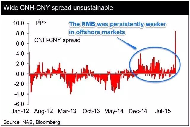 不过对于央行而言,如何控制住CNY和CNH的价差将是未来的一大难题。在相对自由浮动的离岸市场,资金如果流出强劲的话,人民币面临更多的贬值风险。