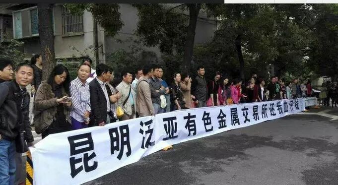 投资者聚集在泛亚有色金属交易所前