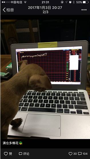 这源于几天前教主发这样一条朋友圈。。“满仓多棉花”