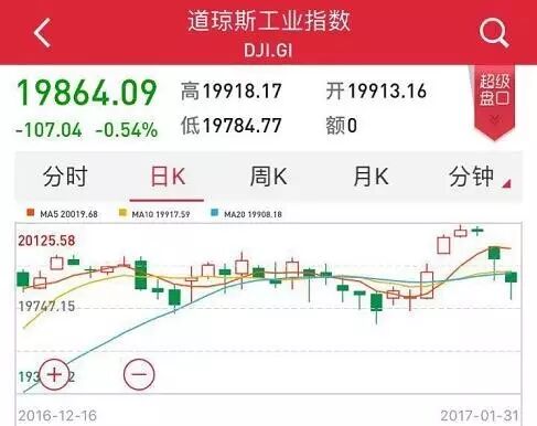 1月31日美股收盘,道琼斯指数从上个交易日的19971.13点,下跌到了19864.09点,跌幅达0.54%。这也是特朗普的移民禁令引发硅谷和全球的强烈反对之后,道琼斯指数连续2个交易日跌幅超过100点。