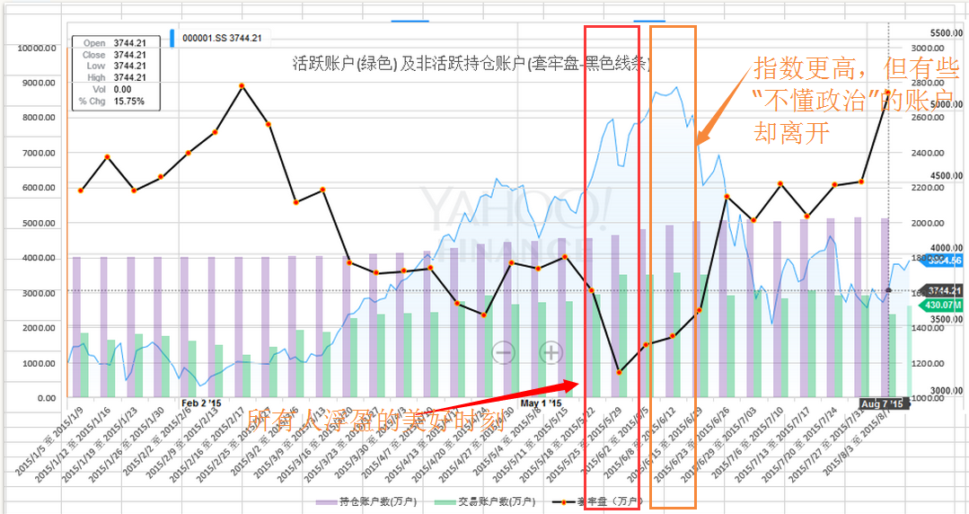 我们看到随着股市的上升,大量装死的账户复活,参与了交易。
