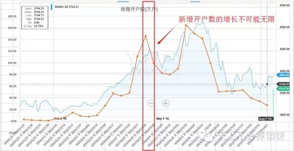 我们看到,这一段时间内新增开户数量的下滑,指数横盘,因为参与者的数量逼近是有上限的,这个和股民的信心没有关系,总量是客观的。