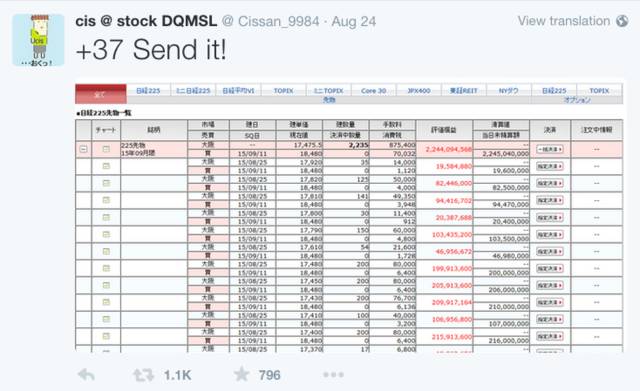 一名神秘的日本日内交易员宣称,自己在周一市场崩盘中赚到了3400万美元。