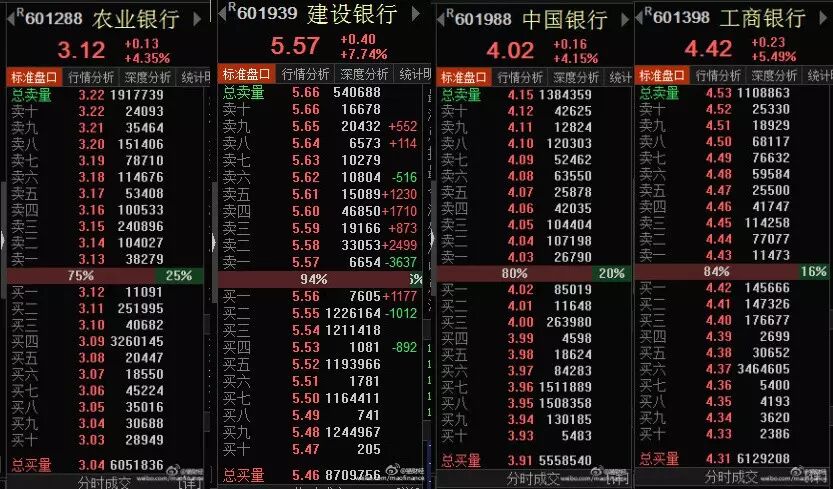 继昨天银行股奋勇护盘后,今日,银行股再度上场“救驾”。看看建行超过800万手的委买量就知道有多猛。