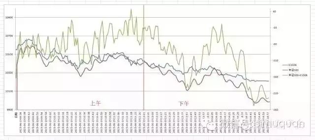 我们看到,第二天股指现货果然大跌576点,而期货则还有反弹158点。