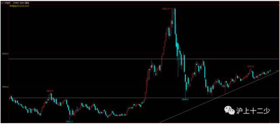 这是我对IF加权周线的分析结果——处在大震荡区间内的小上涨趋势之中。对照静态的图表,这个结论我认为是没有问题的。能对照静态图表得出用文字表述清楚的分析结论,基本上就算能看清市场了。当然,不同视角下不同的人会有不一样的结论。结论没有标准答案,你可以有你的结论,我可以有我的结论,因为,分析使用的工具不同,就有可能得出不一样的结论。并且,也是很重要的一点,分析结论并不是决定交易成败的唯一条件。为何?我们常说“看对行情,做错交易”,这句话表达的就是这个意思。