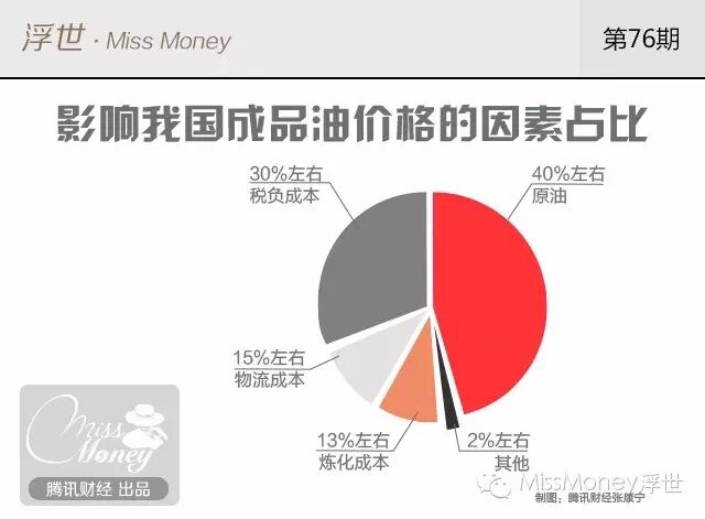 按照最近几年我国成品油率60%计算,我国成品油价格中,原油成本比例在40%左右,炼化成本占到13%左右,物流成本占到15%左右,税负成本占到30%左右。其中,原油成本就是以国际不同油价品种为基准形成的国际油价,基本反映了国际油价变化情况。但我国在炼制环节,不同企业、不同油源、不同品质生产炼制的成品油,成本差异较大,炼油行业平均成本及行业平均利润难以确定;在销售环节,不同区域的场地租金、管理费用等差别较大,同样难以确定。因此,实际上政府难以对炼厂成本和销售行业利润空间进行具体测算,导致成品油定价的准确性不足。还有一种说法是,我国的原油生产成本很高,约40美元/桶,是沙特、伊朗等国的4倍。