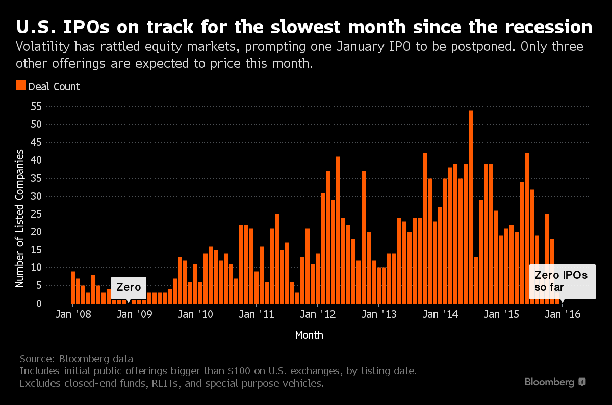 问:猜猜刚刚过去的2016年头一个月美国有几个新股IPO?