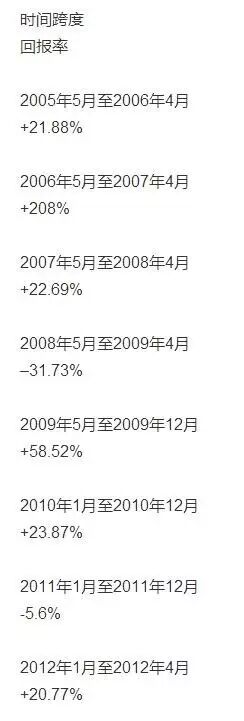 通常考察投资水平仅有单边的牛市或熊市表现不足为凭,有经历完整周期的记录为佳,如白居易诗云:“试玉要烧三日满,辨材须待七年期”。恰好五月份整理了一个投资个案,自2005年5月至2012年4月底整整七年,期间五年熊市、两年牛市,经历了“熊——牛——熊”的市场循环,表现如下: