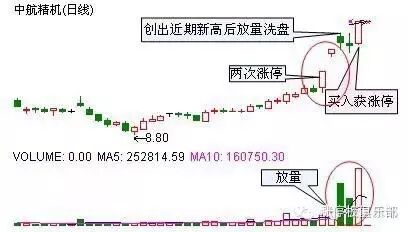 三、短线强力吸盘后,股价再度翻身向上时买入。一只股票的拉升,通常不会一蹴而就。一方面,短线资金会有较强的获利出局意愿,制约了股价的进一步走高;另一方面,主力也清洗浮筹,为后续拉升做准备。而股价再度翻身向上,则说明短线洗盘结束,新的拉升就此展开,兔宝宝和中航精机基本都是这样的走势。