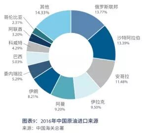 此外,根据国家统计局统计,2016年我国原油对外依存度已突破65%。我国原油进口主要来自于中东地区和俄罗斯等产油国。