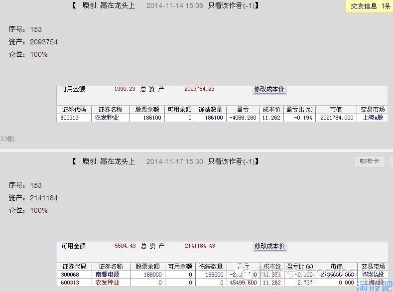 000705浙江震元和300387富邦股份,是11月12日听某人随意讲的两只股,因为对其十分崇拜,所以第二天开盘追进。(注:没有抱怨之意,盈亏自负。只能说杀猪杀屁眼,各有各的方法。独立思考非常非常重要。)