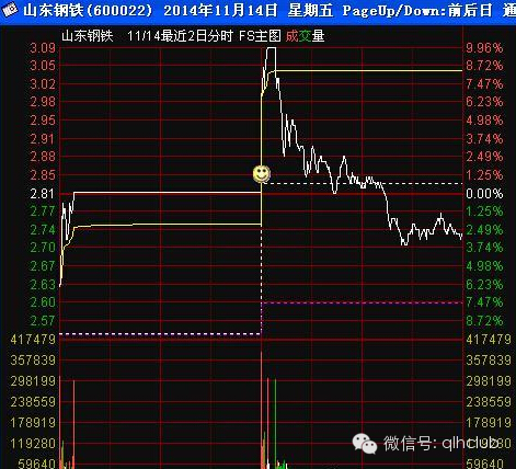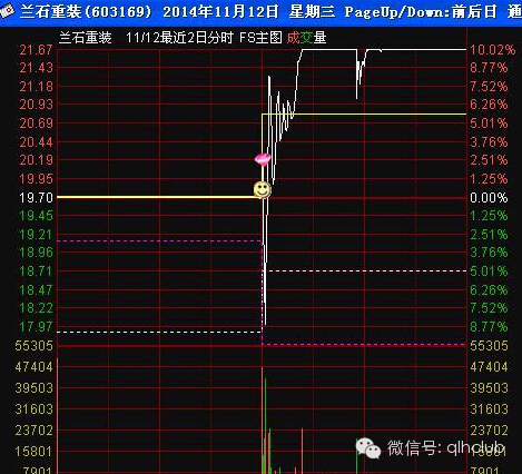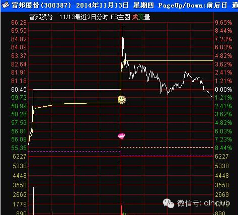 图2:富邦股份开盘有经典的买进讯号,但这种经典讯号出现在第一板之后是无效的,后边我会讲到这种买点的应用条件。