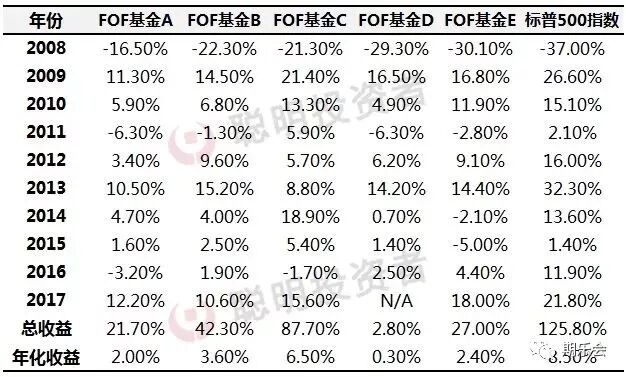 但最终的结果是,标准普尔500指数完胜上述5只对冲基金。在过去10年中,标准普尔500指数累计上涨了125.8%,平均年收益达到8.5%。而5只基金表现最好的累计只上涨了87.7%,平均年收益为6.5%。表现最差的仅增长了2.8%,平均年收益仅为0.3%。